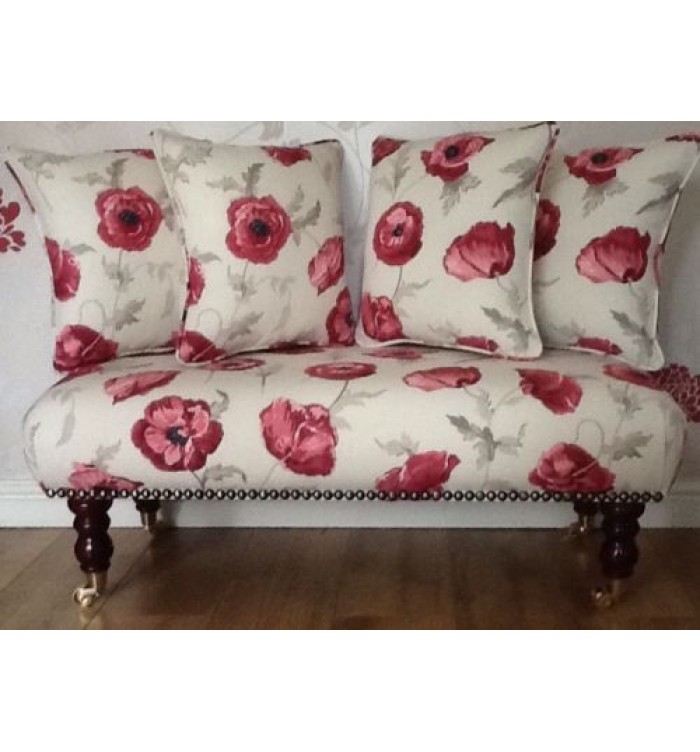 Long Footstool Stool & 4 Cushions Laura Ashley Freshford Poppy Fabric