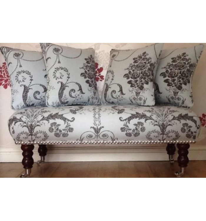 Long Footstool Stool & 4 Cushions Laura Ashley Josette Duck Egg Charcoal Fabric