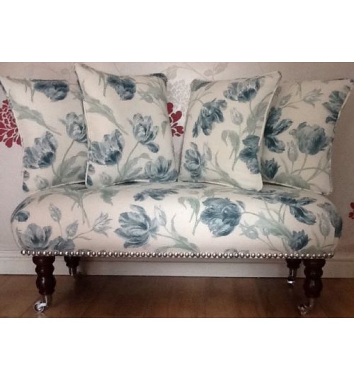 Long Footstool Stool & 4 Cushions Laura Ashley Gosford Duck Egg Fabric