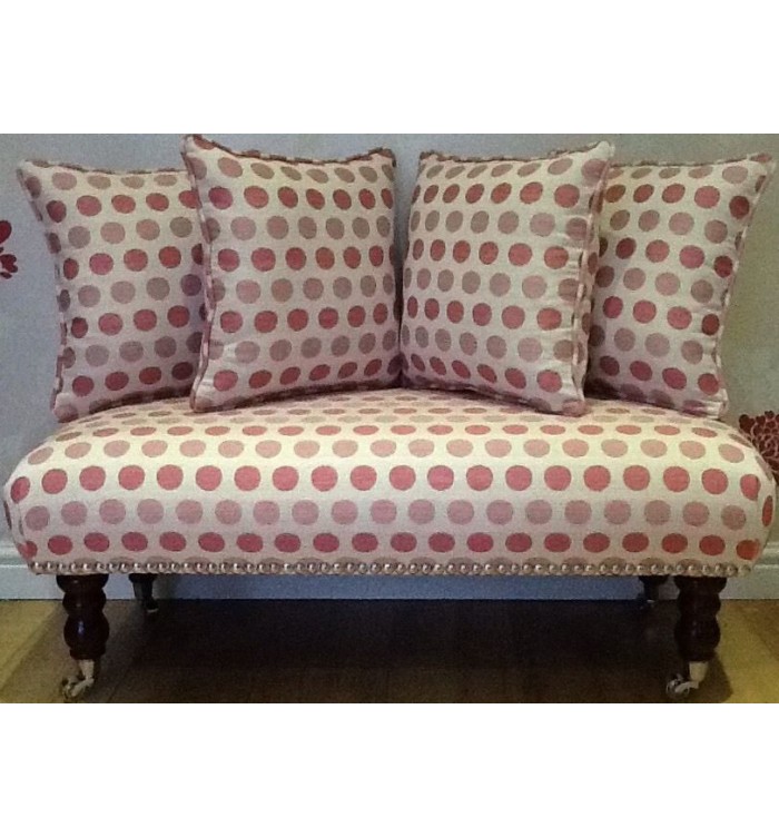 Long Footstool Stool & 4 Cushions Laura Ashley Toby Spot Cerise Fabric